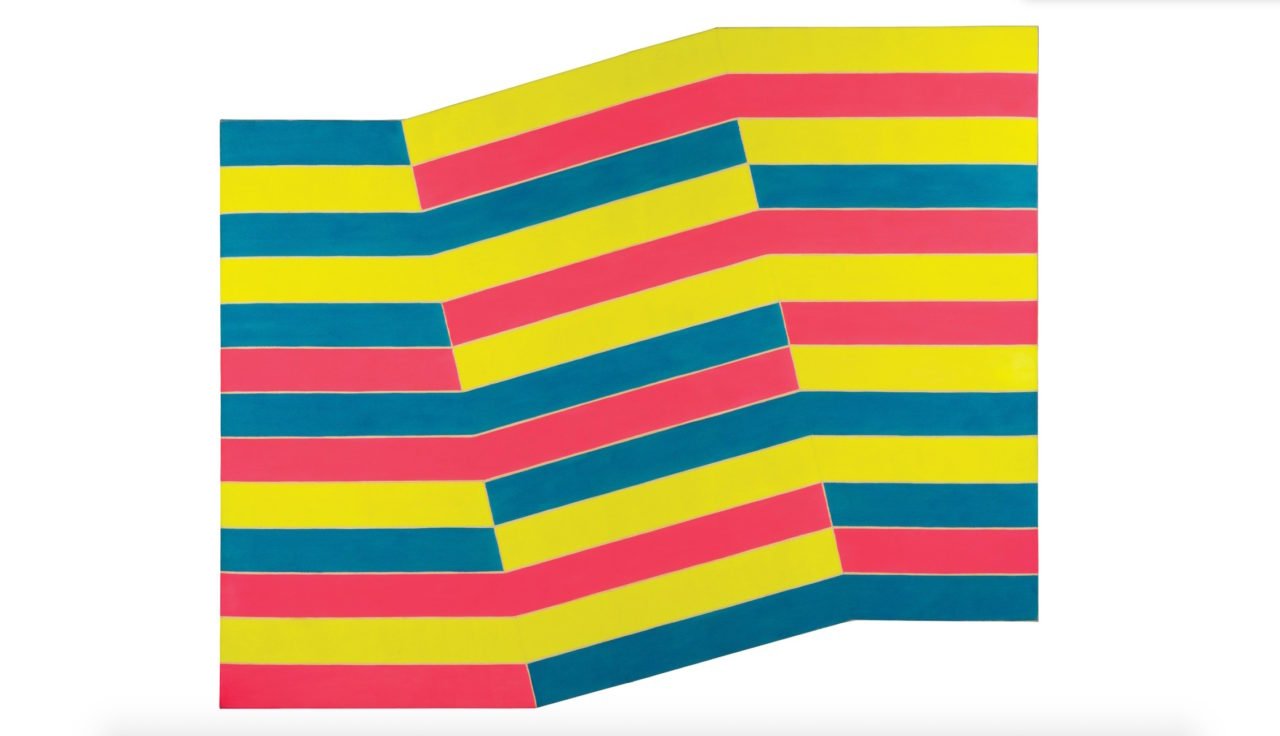 While Stella may have been peers with Donald Judd and Carl Andre in the sixties, just under a decade later he abandoned his more rigid style altogether for more expressionistic canvases that broke into the third dimension. Great transitional works from this time include 1973’s Rozdol II and Inaccessible Island Rail from 1976. From the 1980s and onward, Stella has moved into even more experimental bodies of work. Mid-career and late-career pieces are grand in scale (i.e.- 1984’s thoroughly postmodern St. Michael’s Counterguard.) While painterly in their color and use of line, recent work is decidedly sculptural: three-dimensional and filled with movement.