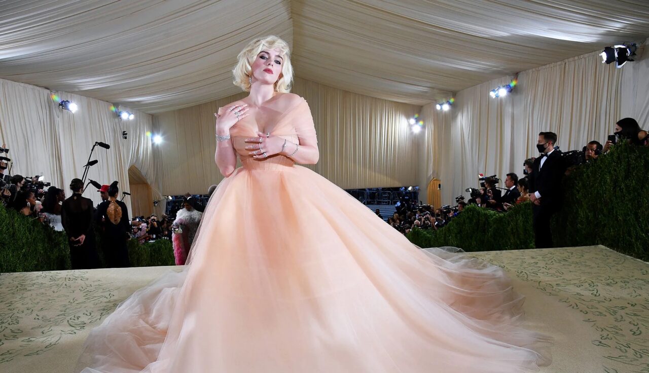 It seems long trains have become the norm at the MET party. You may remember Rihanna and Lady Gaga from galas past. However, this year the train was chugging behind Billie Eilish, who went from streetwear to very different expressionism of feminism. Her tulle ball gown with a 15-foot train took a village of handlers to manage as the young star channeled Marilyn Monroe with blonde locks, a tight corset, and pouty lips.