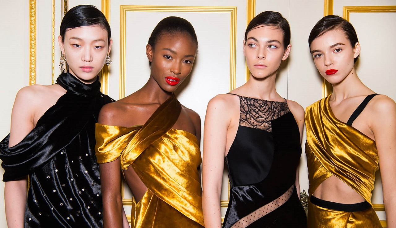 Wu’s Fall 2017 line marks his 10th anniversary in the business, but his designs are as fresh as the floral themes in his line for this autumnal season. Easily swinging between Girl-Boss casual suits in black & white plaid and vintage Hollywood glam gowns in shimmery gold velvet and black satin, this season, Wu has got you confidently covered. All we can say is, Wu-hoo!