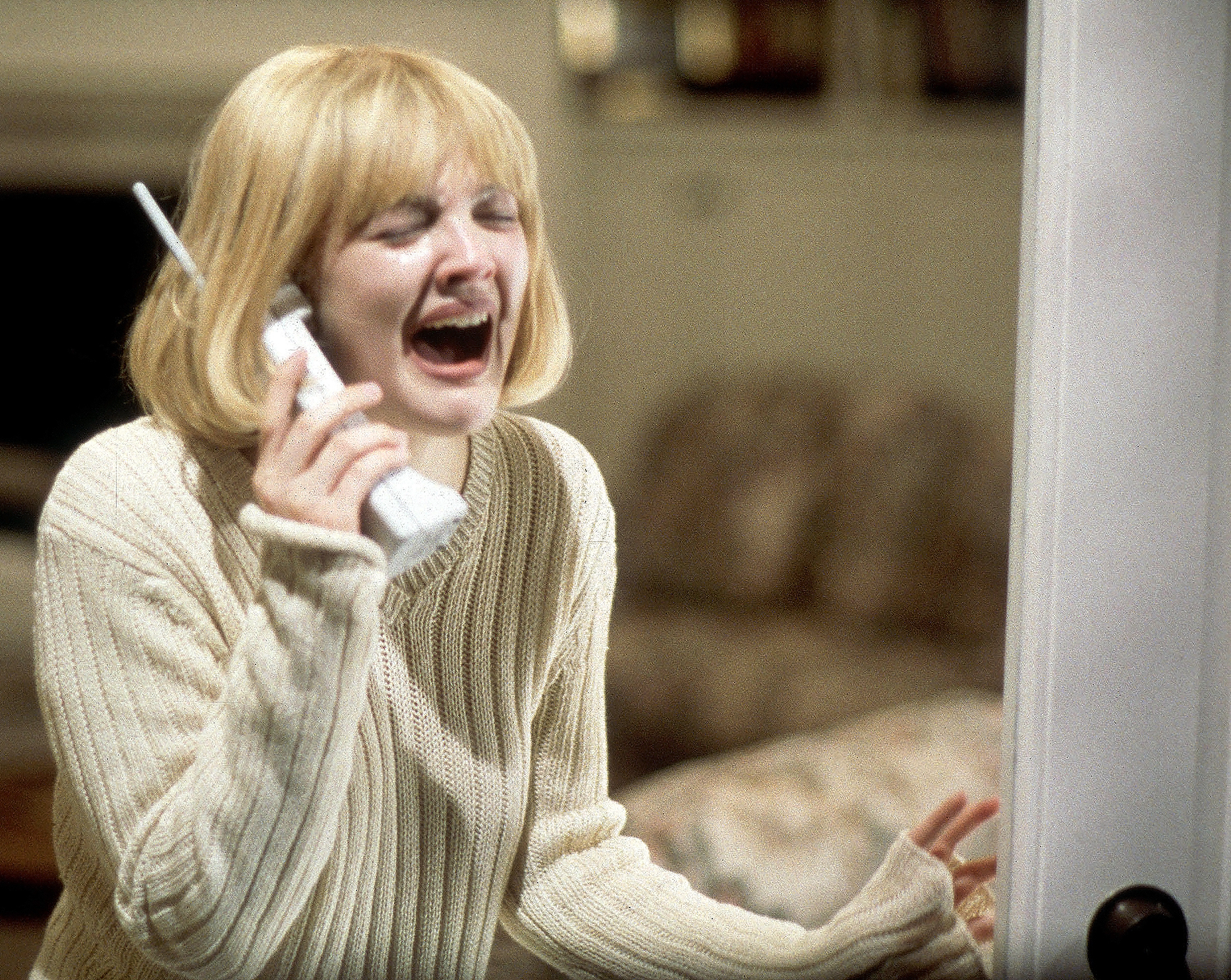 The first and the best movie of the meta-horror genre—in which filmmakers self-consciously played on the expectations of viewers jaded by the Halloween, Friday the 13th and Nightmare on Elm Street series—Scream got off to a hot start with a career-building cameo by Drew Barrymore, who, at the time, was a 21-year-old child star most famous for her teen years of drug and alcohol abuse. What begins in the scene as a wrong number slowly turns terrifying when the sweet voice on the phone becomes menacing and manipulative and Barrymore faces doom. Aside from being shot and cut expertly by Wes Craven, all of the scene’s open windows—through which we watch Barrymore as the killer might—belie her utter vulnerability. Shocks also come from the fact that the most famous person in the film dies so damn fast.