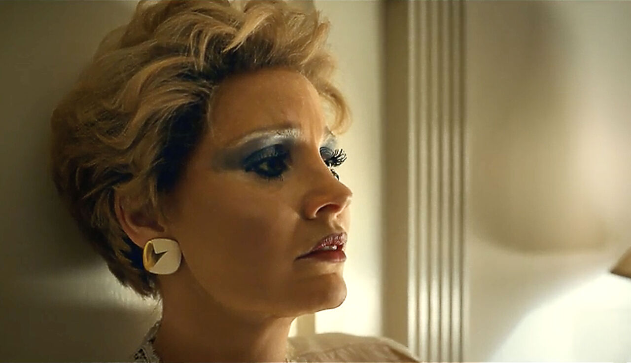 At the beginning of the trailer, Tammy Faye and Jim have just gotten married and are not yet tainted by the wild religious rollercoaster of a life that they’ll soon have. After the couple figures out their more significant purpose, which is to spread the word of God and to teach acceptance and love, they set to work creating one of the most colorful televangelists broadcasting networks ever. Jim preaches while his wife sings, and boy, does she sing. Soon they’re bathing in their riches from their fraudulent empire, and it all comes crashing down from there.