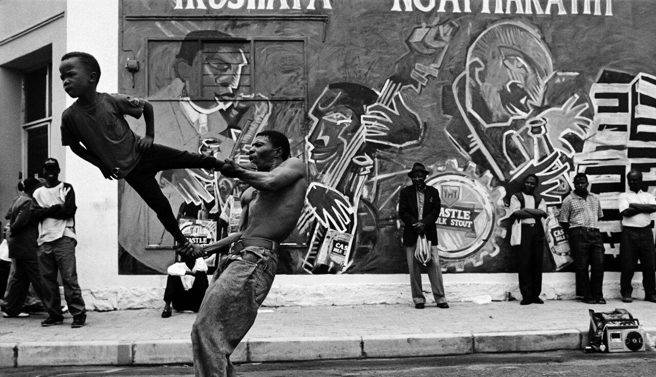 What is striking about the eight press photos for “A Female Gaze”, provided to PROVOKR by the curators of the exhibition, is how central the dichotomy between strength and vulnerability is to the craft of street photography. Being out in public in an urban centre requires a certain level of nonchalance, even bravado – see the men striding confidently with their fedoras, coats, and suitcases, or the brash teenage boys carrying boomboxes larger than their torsos, or the South African street performers whose take-home pay will be commensurate with their level of bravado.
